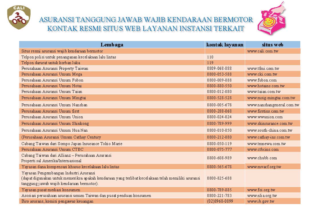 ASURANSI TANGGUNG JAWAB WAJIB KENDARAAN BERMOTOR KONTAK RESMI SITUS WEB LAYANAN INSTANSI TERKAIT