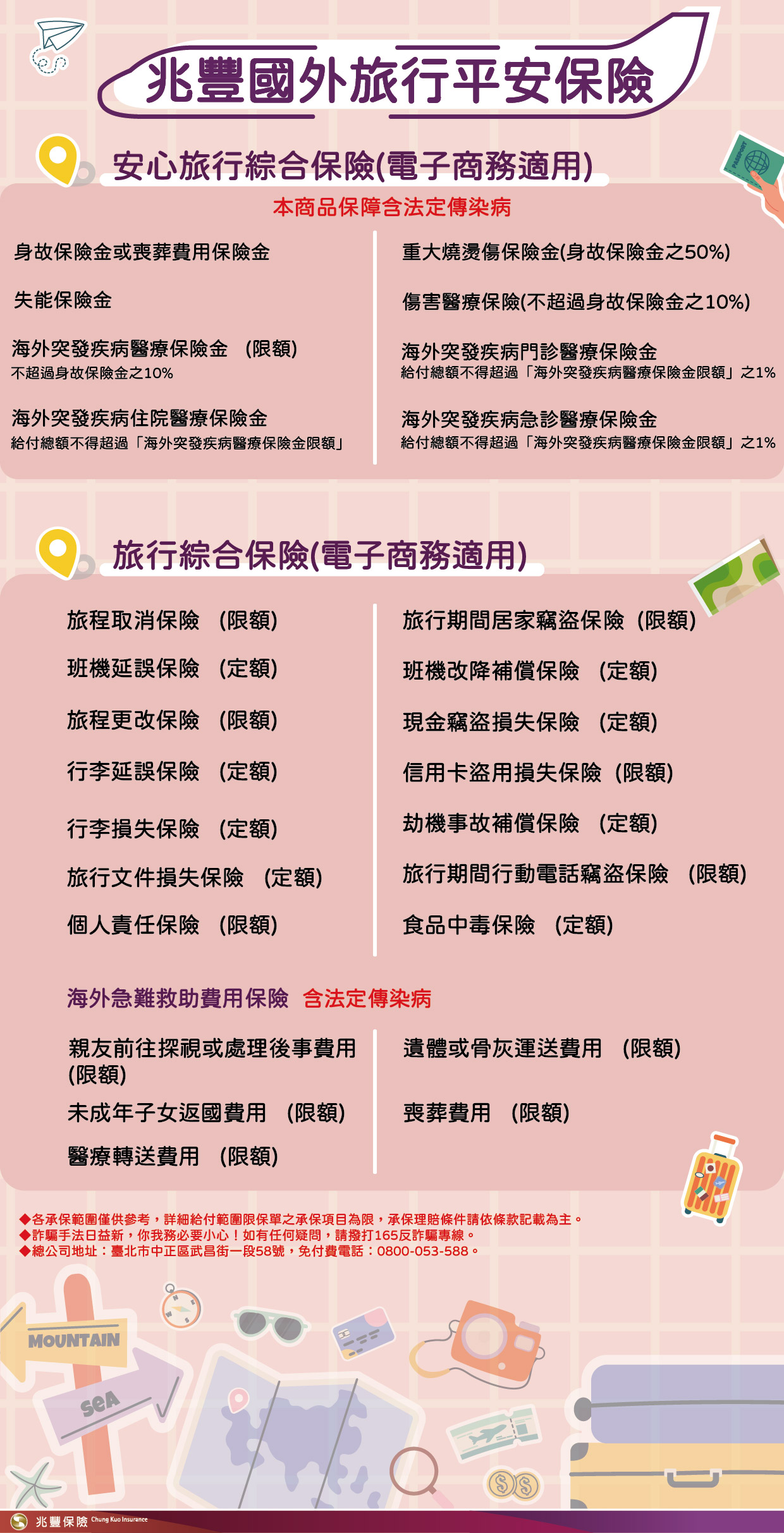 兆豐產物安心旅行綜合保險(電子商務適用)(含法定傳染病) 理賠資訊